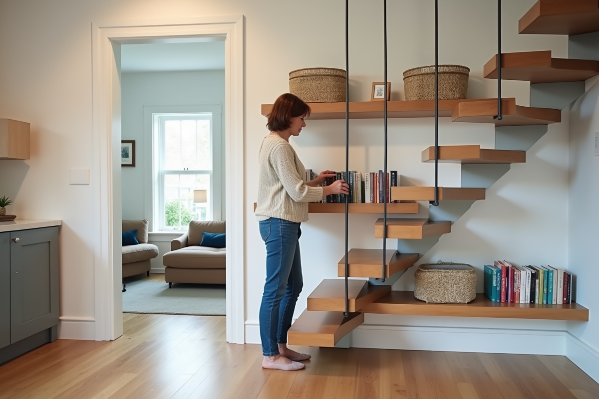 Le meilleur atout pour repérer les espaces à transformer ? Adopter le regard du visiteur. En descendant les escaliers, ce triangle oublié sous les marches, propice à un placard, une bibliothèque ou même un coin bureau. Le couloir, souvent réduit à une piste de transit, peut prendre vie avec quelques rangements discrets ou une mini galerie d’affichage. Un demi-palier étriqué gagne en convivialité grâce à une banquette pour se poser ou quelques étagères fixées au mur.